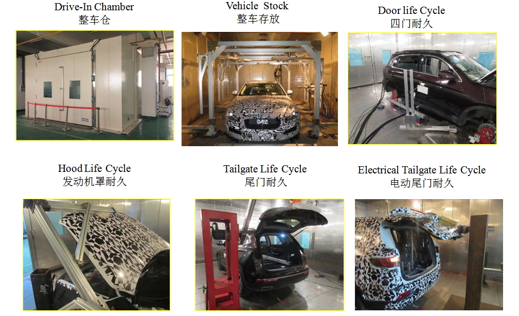 环境存放、尺寸测量、四门两盖耐久、四门两盖刚性强度、车架模态、含电动车门和尾门